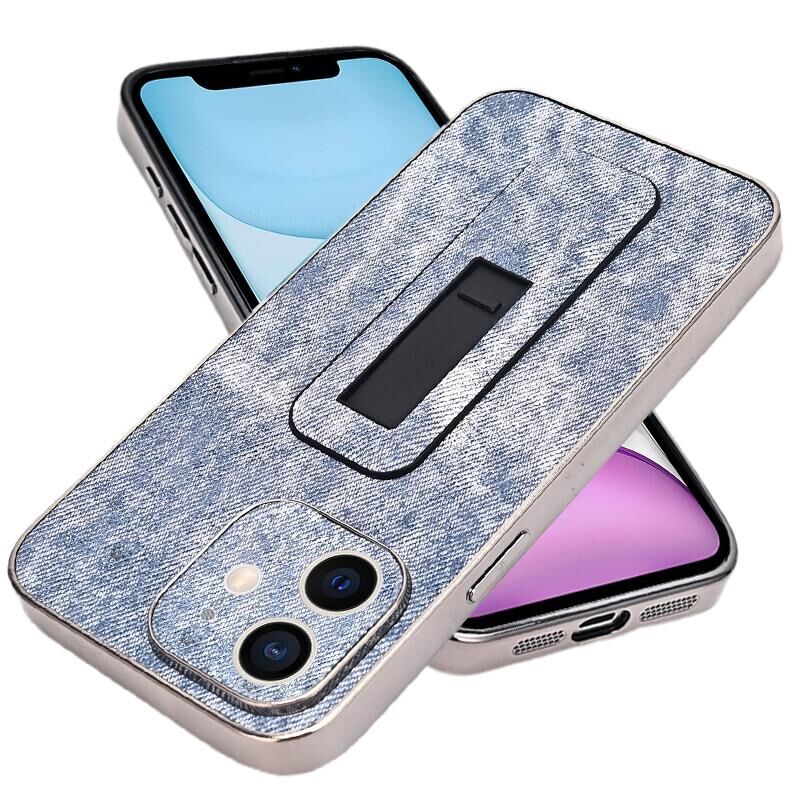 For iPhone 11 Denim Pattern Electroplated Push-pull Bracket Cooling Phone Case(Blue)