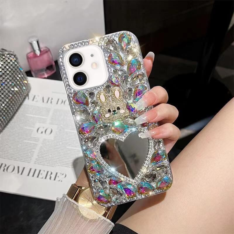 For iPhone 11 Diamond Mirror Rabbit Handmade PC Phone Case(Colorful Love Mirror)