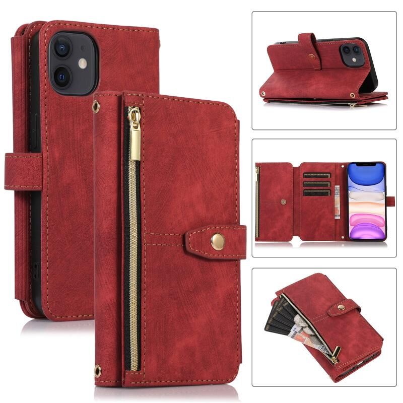 For iPhone 11 Dream 9-Card Wallet Zipper Bag Leather Phone Case(Red)