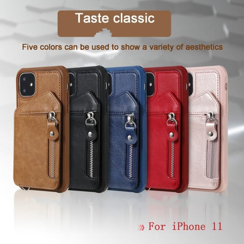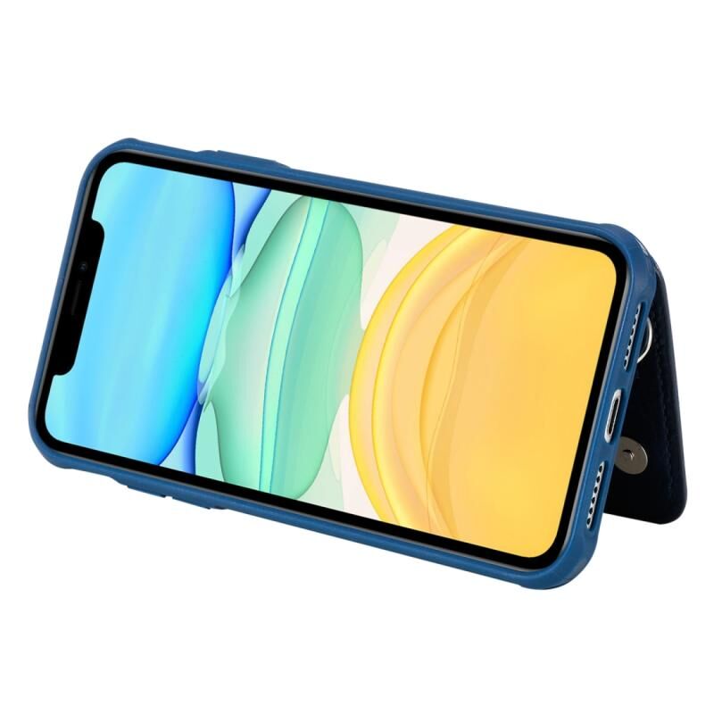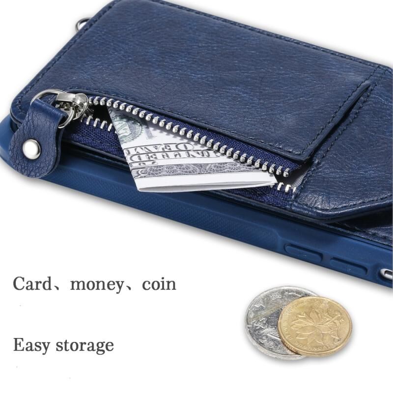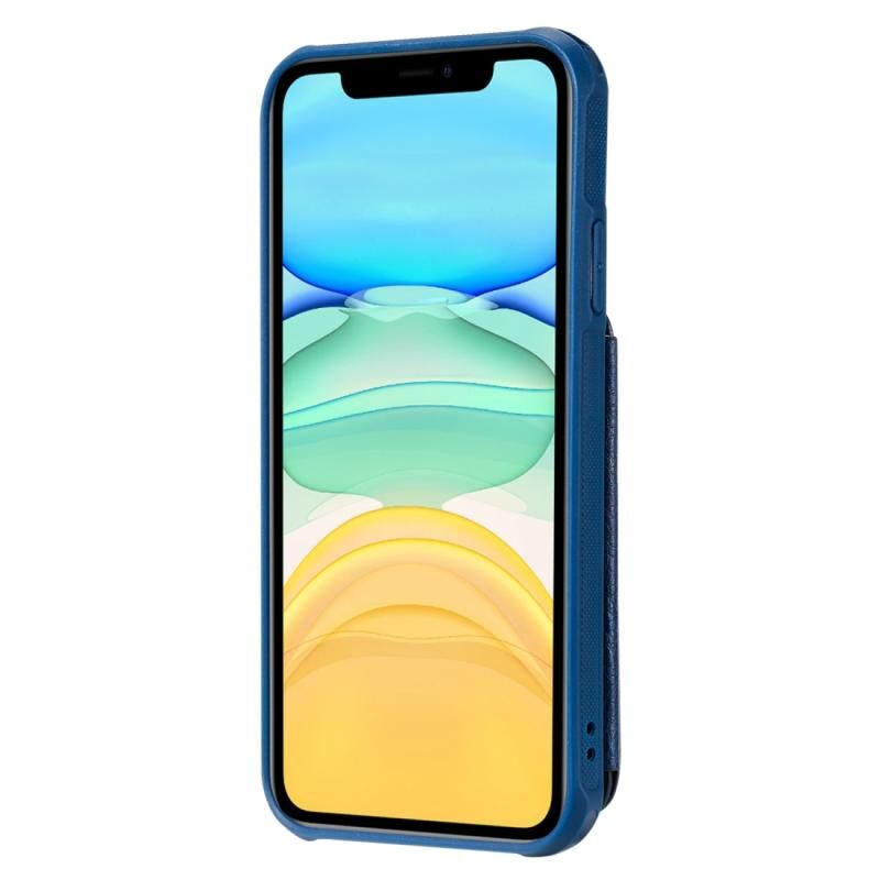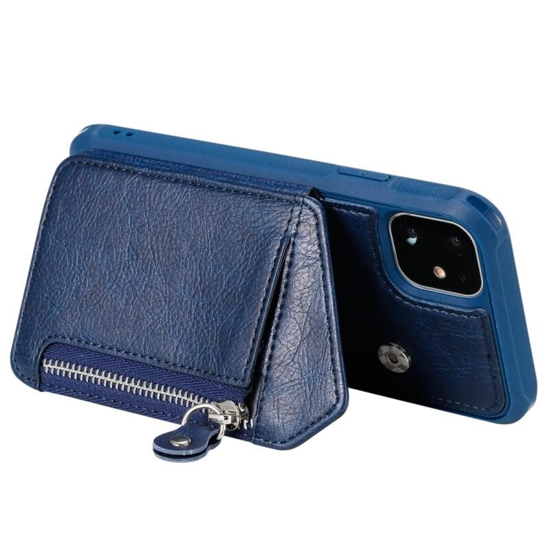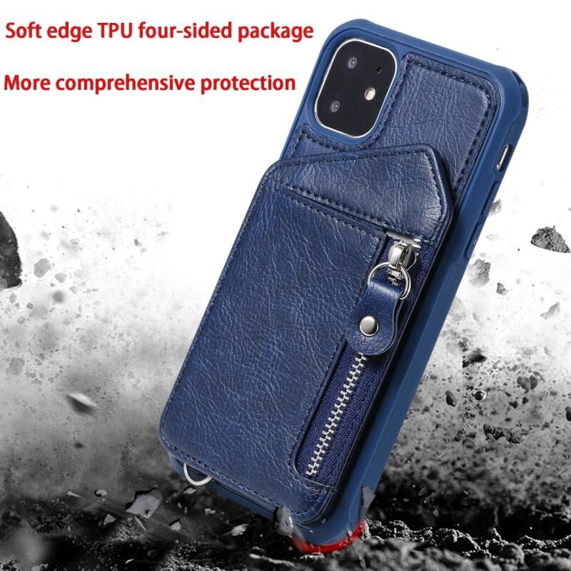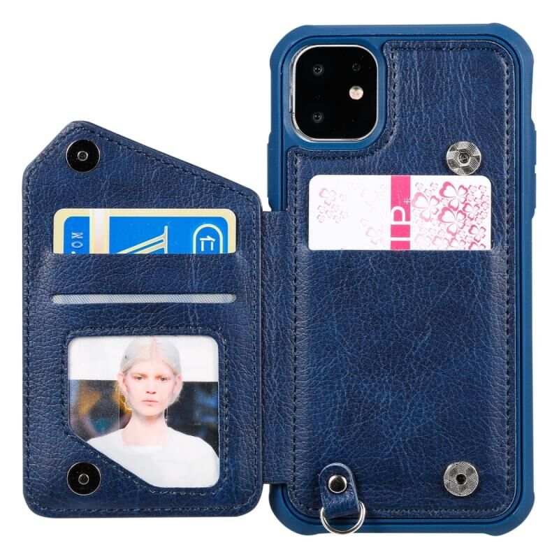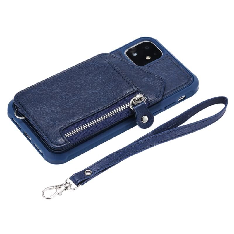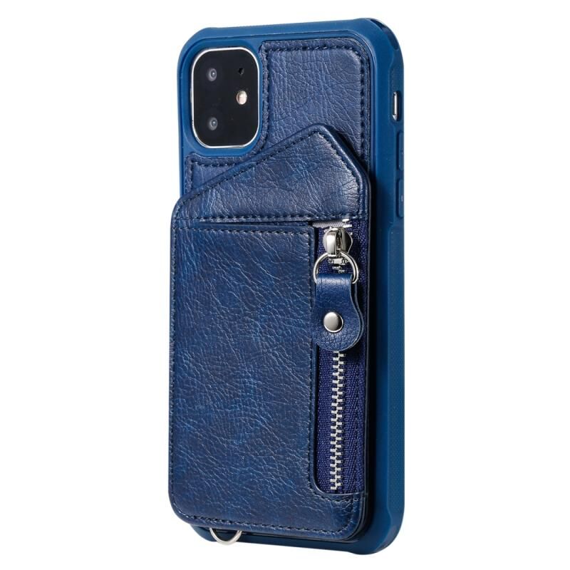 For iPhone 11 Dual Buckles Zipper Shockproof Back Cover Protective Case with Holder & Card Slots & Wallet & Lanyard & Photos Frames(Blue)