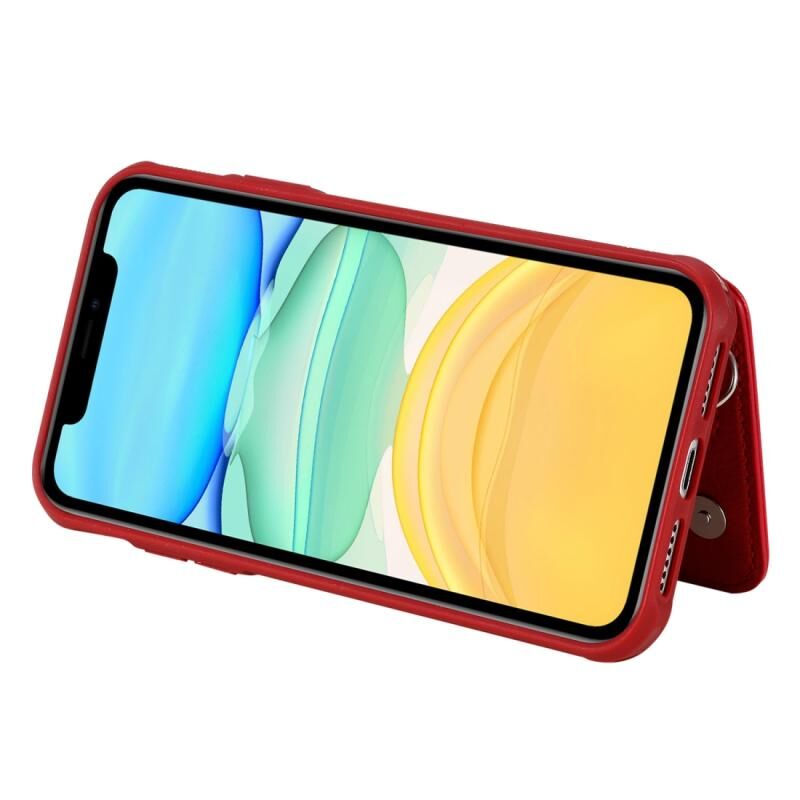 For iPhone 11 Dual Buckles Zipper Shockproof Back Cover Protective Case with Holder & Card Slots & Wallet & Lanyard & Photos Frames(Red)