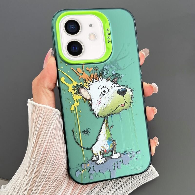 For iPhone 11 Dual-sided IMD Animal Graffiti TPU + PC Phone Case(Melting White Green Dog)