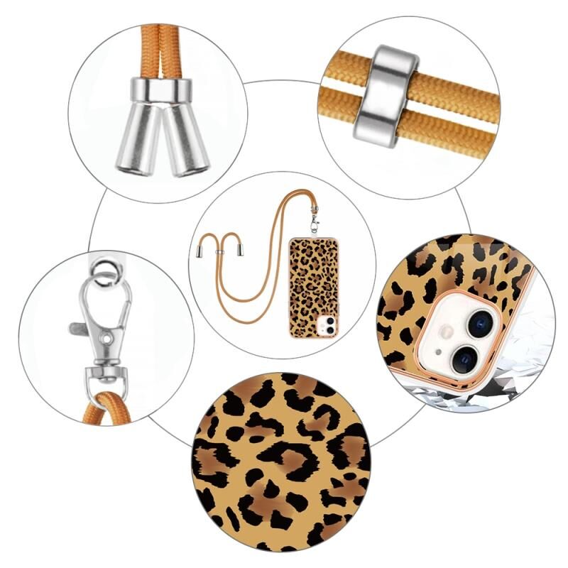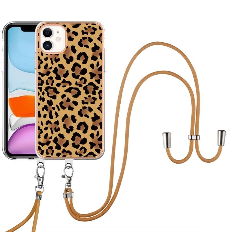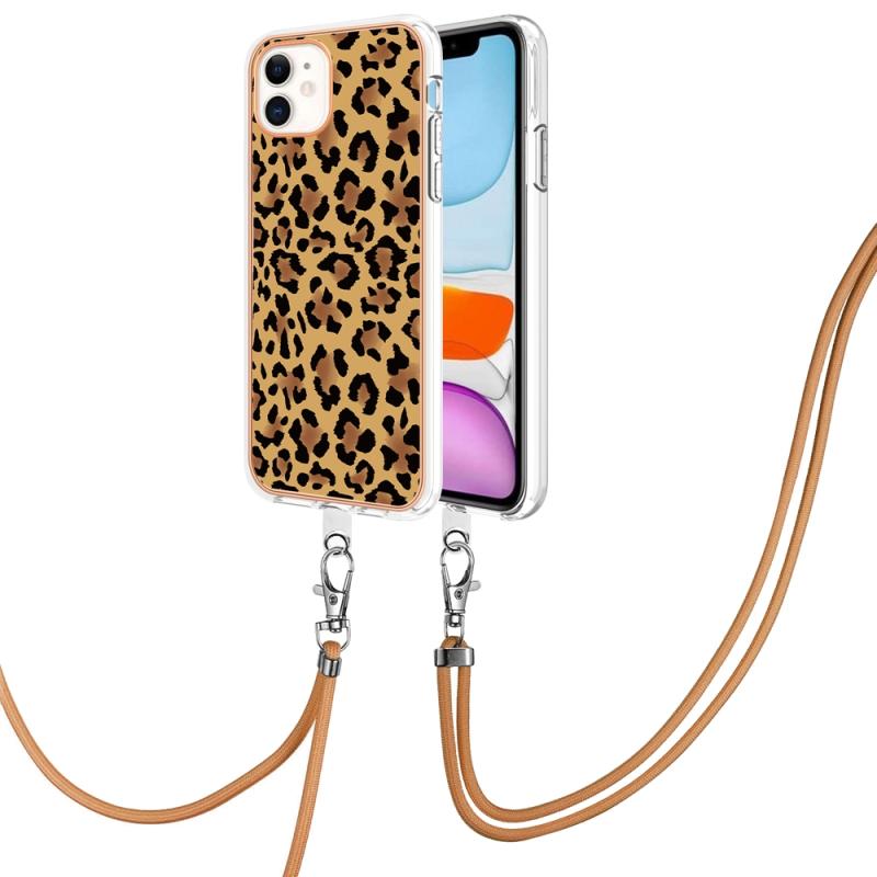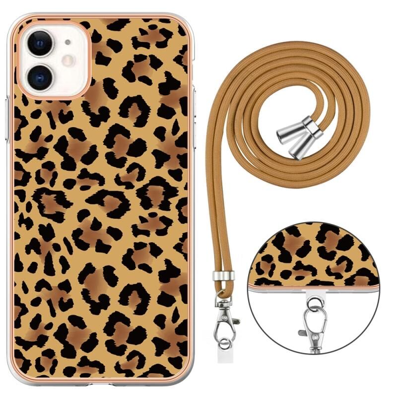 Θήκη iPhone 11 με Επιμετάλλωση, Διπλής Όψης IMD και Λουρί (Σχέδιο Λεοπάρ)