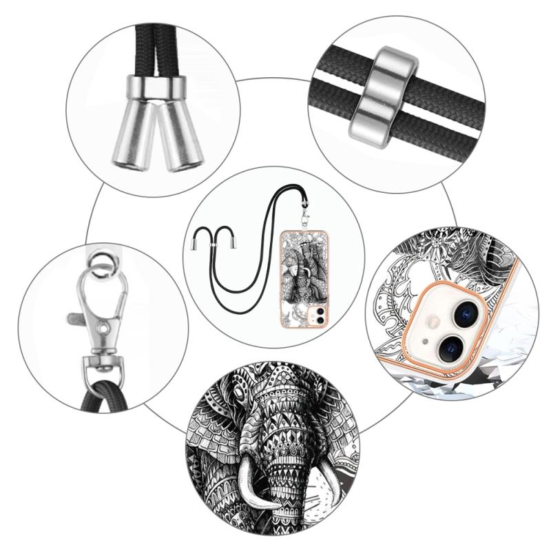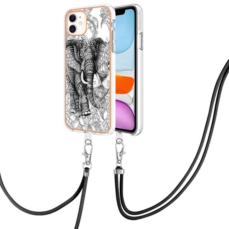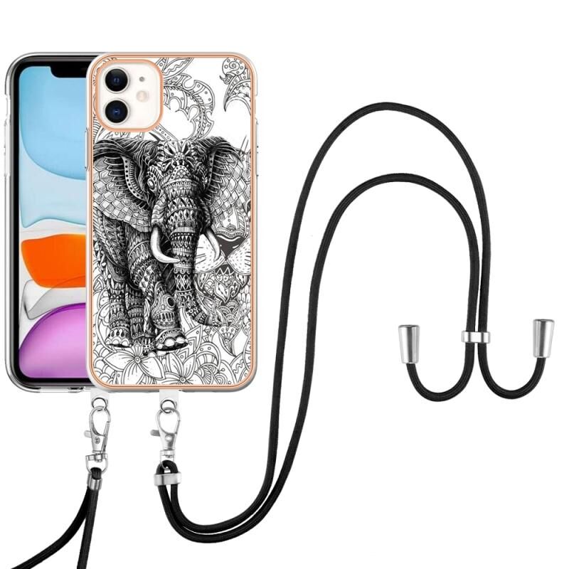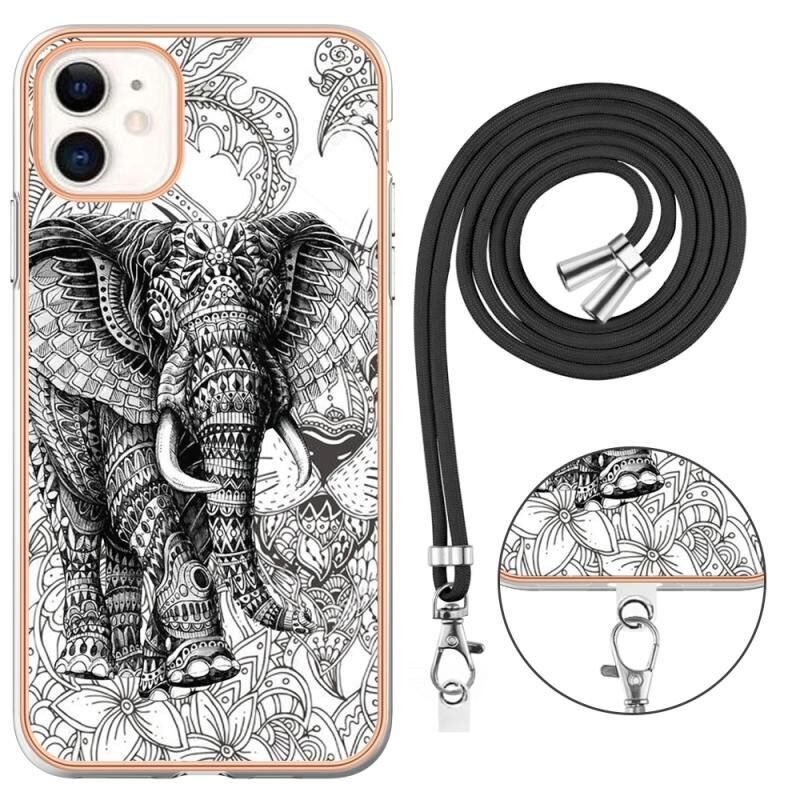 For iPhone 11 Electroplating Dual-side IMD Phone Case with Lanyard(Totem Elephant)