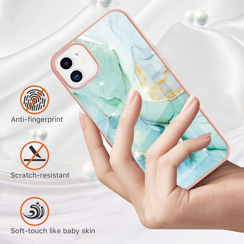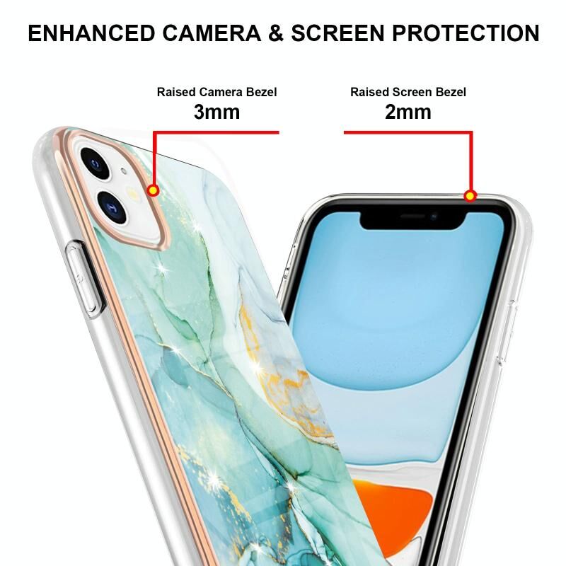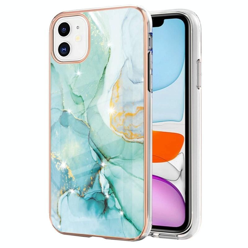 For iPhone 11 Electroplating Marble Pattern Dual-side IMD TPU Shockproof Case (Green 003)