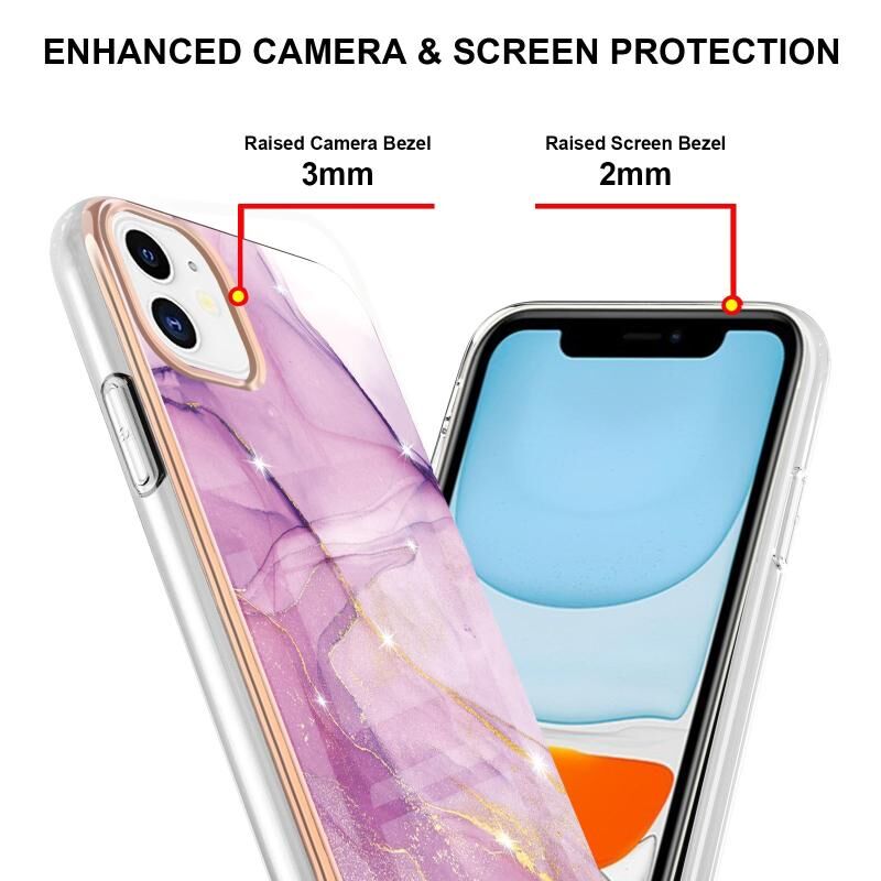 For iPhone 11 Electroplating Marble Pattern Dual-side IMD TPU Shockproof Case (Purple 001)