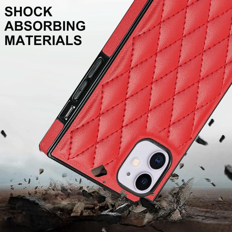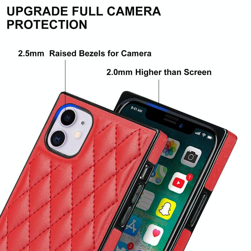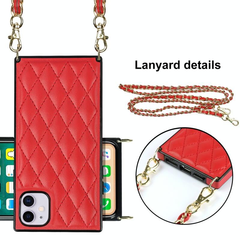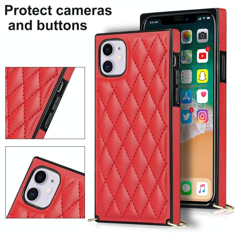 For iPhone 11 Elegant Rhombic Pattern Microfiber Leather +TPU Shockproof Case with Crossbody Strap Chain (Red)