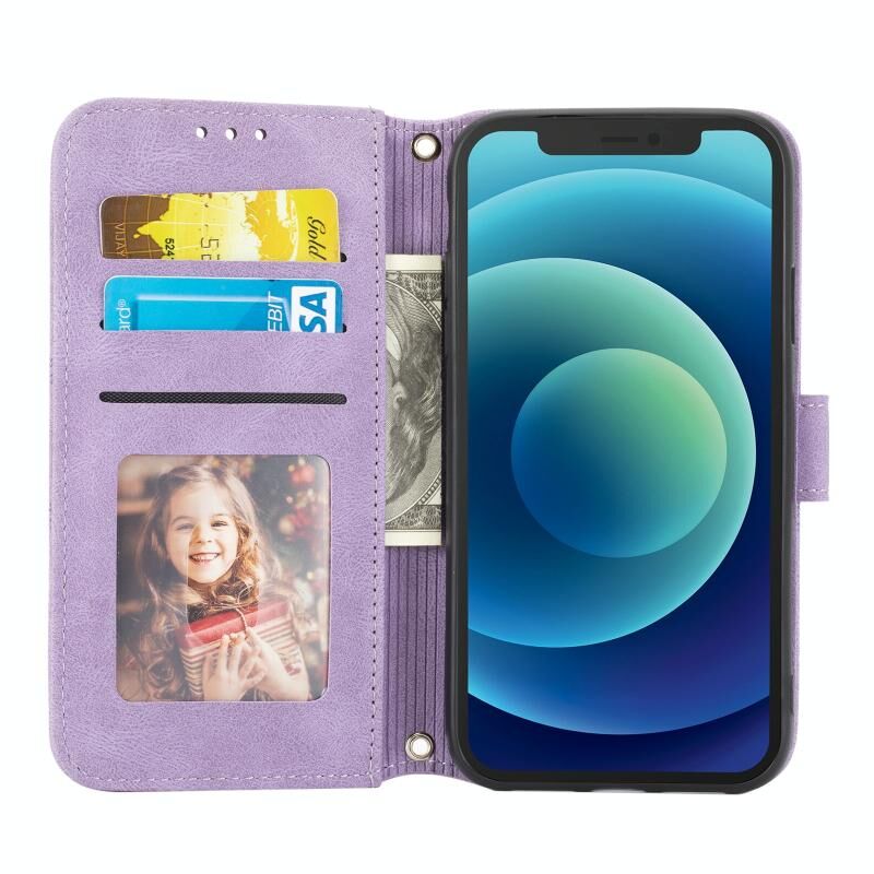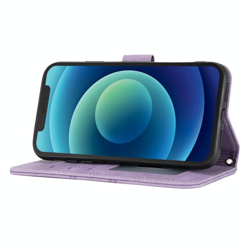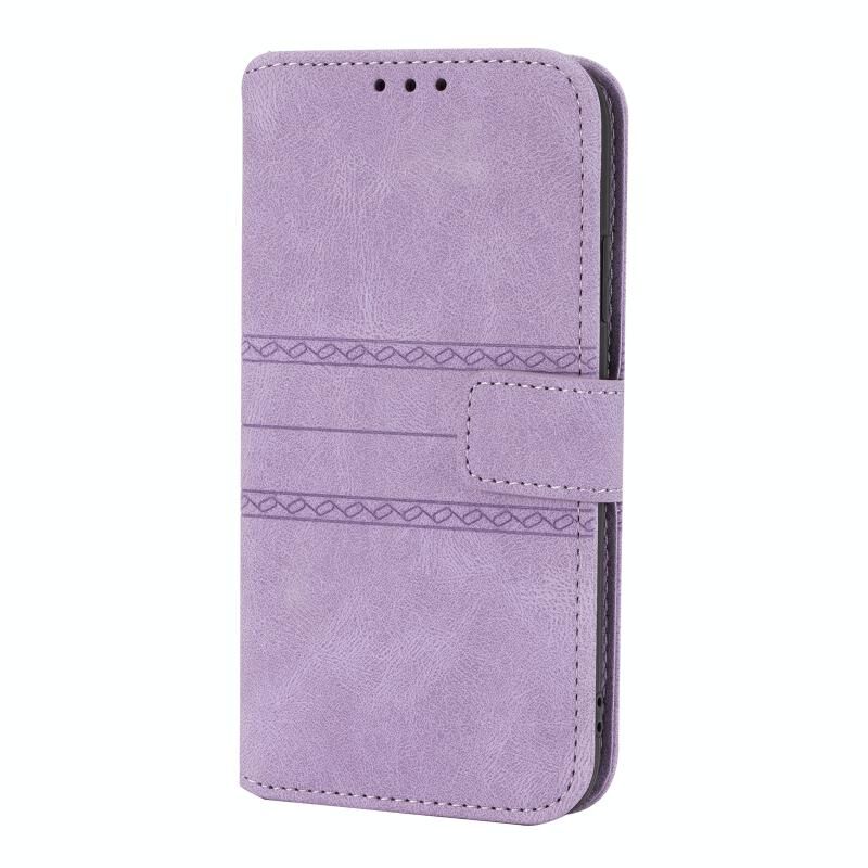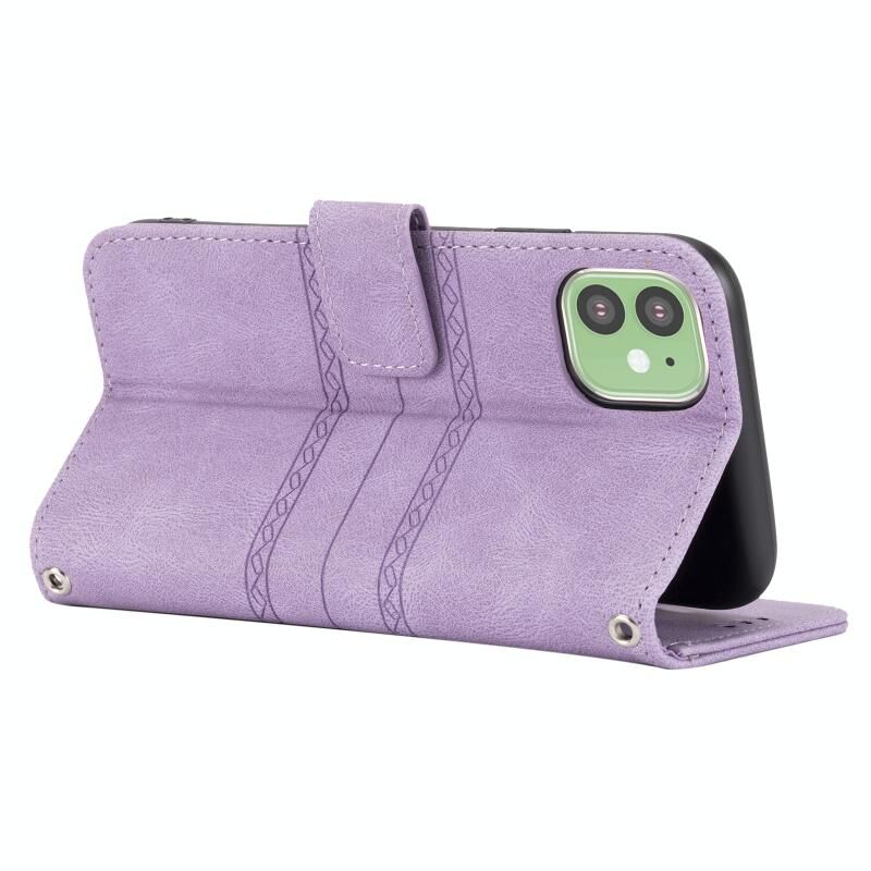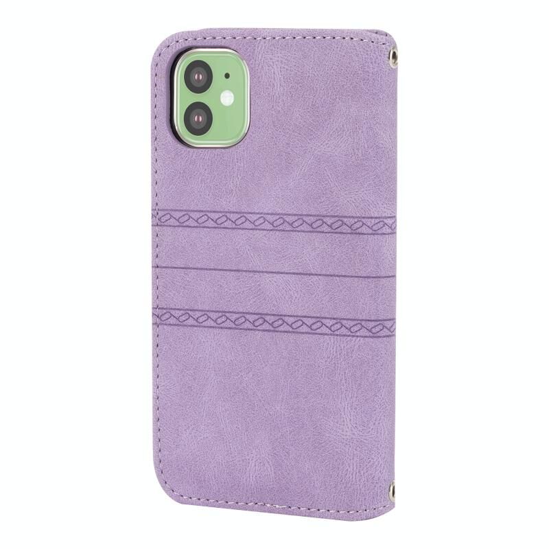 For iPhone 11 Embossed Striped Magnetic Buckle PU + TPU Horizontal Flip Leather Case with Holder & Card Slot & Wallet & Photo Frame & Sling (Purple)