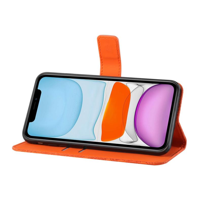 For iPhone 11 Ethnic Style Embossed Pattern Horizontal Flip Leather Case with Holder & Card Slots & Wallet & Lanyard (Orange)