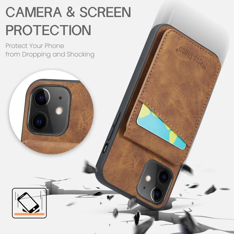 For iPhone 11 Fierre Shann Crazy Horse Card Holder Back Cover PU Phone Case(Brown) (FIERRE SHANN)