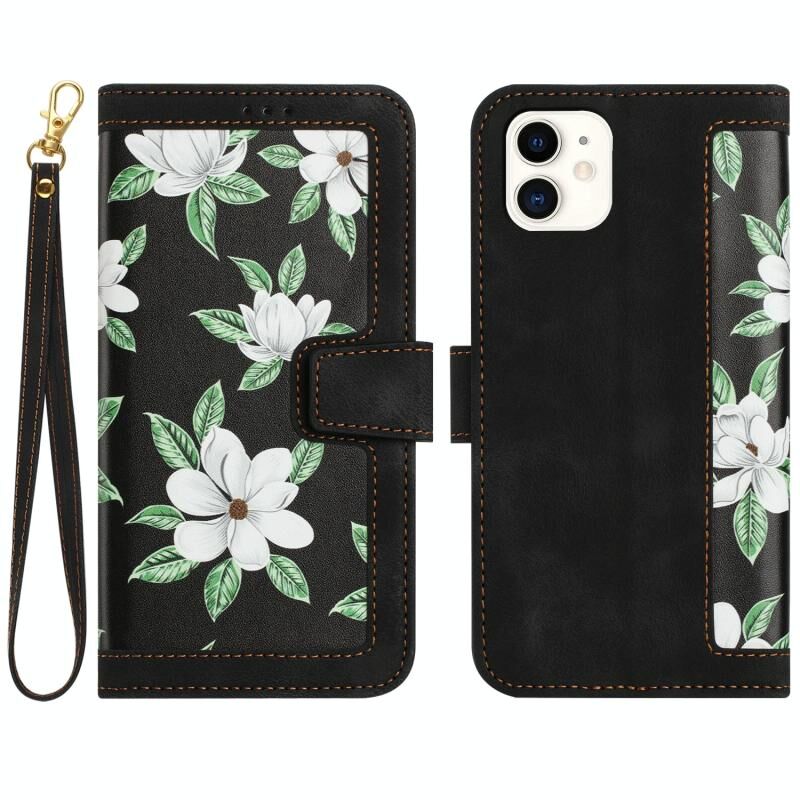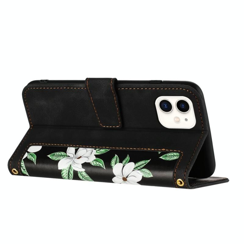 Θήκη τηλεφώνου από δέρμα με λουλουδάτο σχέδιο για iPhone 11 με κορδόνι (Μαύρο)