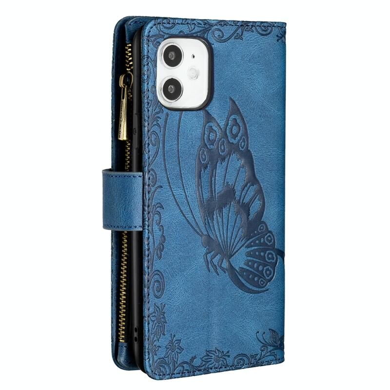 For iPhone 11 Flying Butterfly Embossing Pattern Zipper Horizontal Flip Leather Case with Holder & Card Slots & Wallet(Blue)