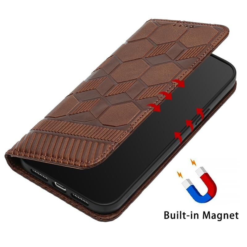For iPhone 11 Football Texture Magnetic Leather Flip Phone Case (Brown)
