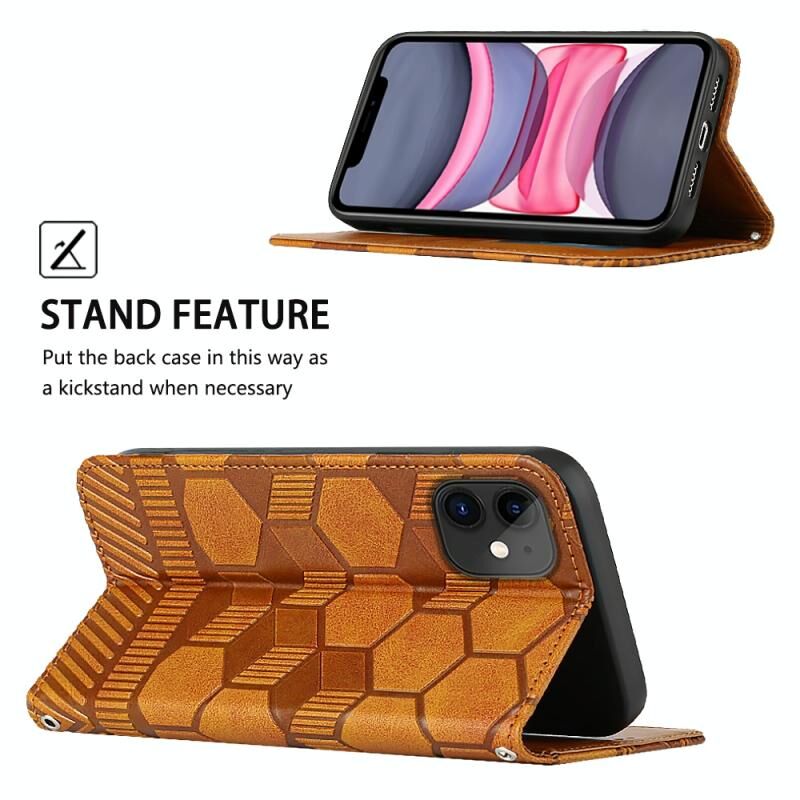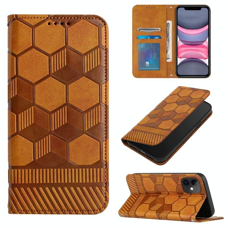 For iPhone 11 Football Texture Magnetic Leather Flip Phone Case (Khaki)