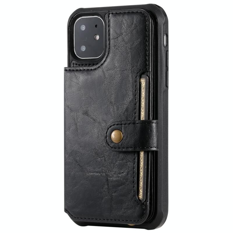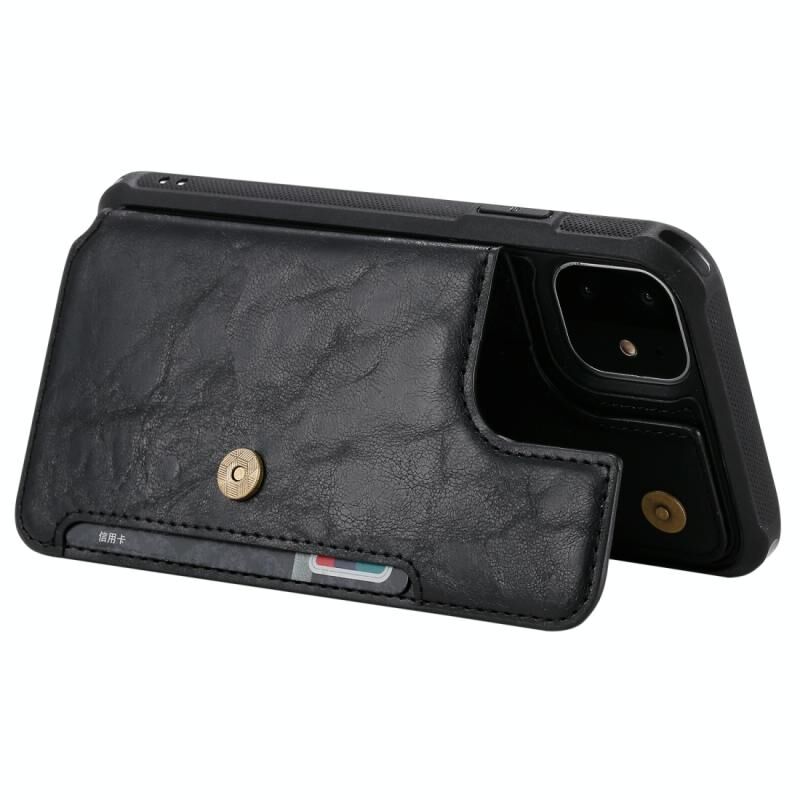 For iPhone 11 For iPhone 11 Buckle Zipper Shockproof Protective Case with Holder & Card Slots & Wallet & Lanyard & Photos Frame(Black)