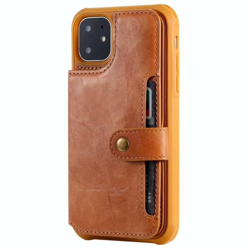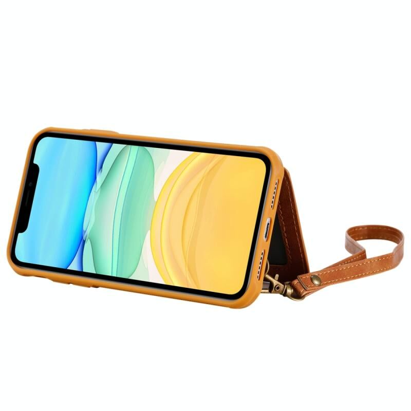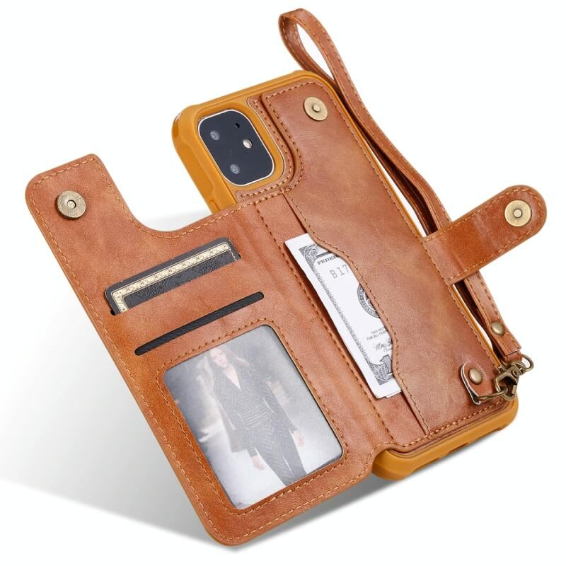 For iPhone 11 For iPhone 11 Buckle Zipper Shockproof Protective Case with Holder & Card Slots & Wallet & Lanyard & Photos Frame(Brown)