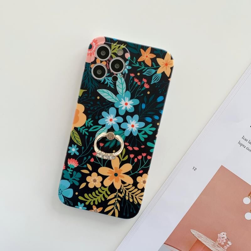 Θήκη για iPhone 11 με σχέδιο παγωμένων λουλουδιών IMD TPU με μεταλλική βάση δακτυλιδιού (Μαύρο)