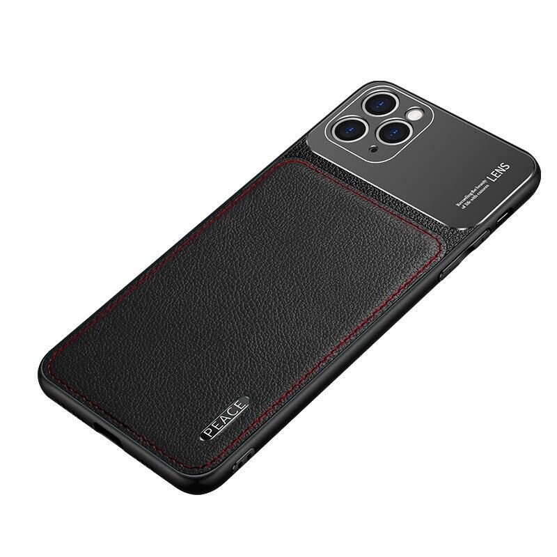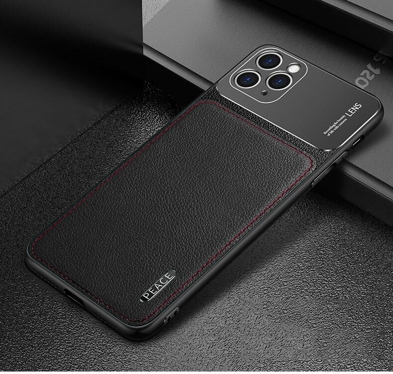 Θήκη Προστασίας για iPhone 11 με μεταλλική ματ υφή + Δέρμα (Μαύρο)