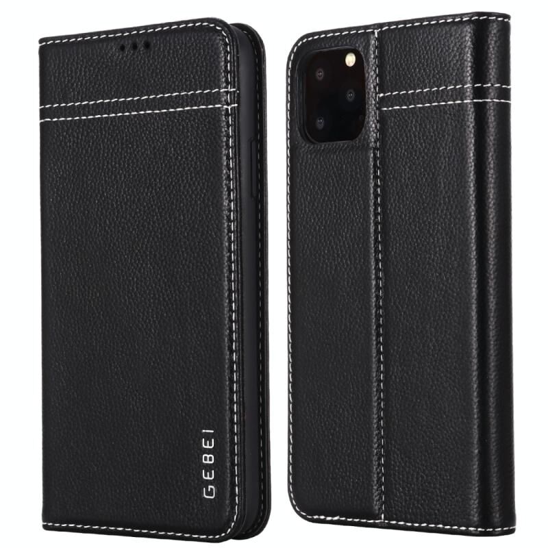 For iPhone 11 GEBEI Top-grain Leather Horizontal Flip Protective Case with Holder & Card Slots(Black) (GEBEI)