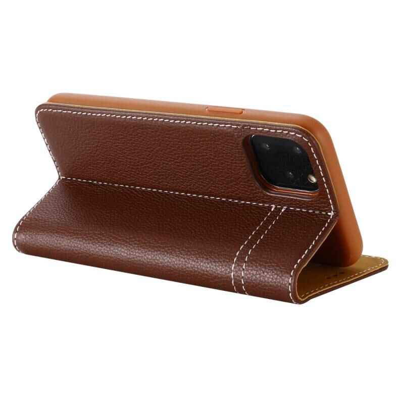 For iPhone 11 GEBEI Top-grain Leather Horizontal Flip Protective Case with Holder & Card Slots(Brown) (GEBEI)
