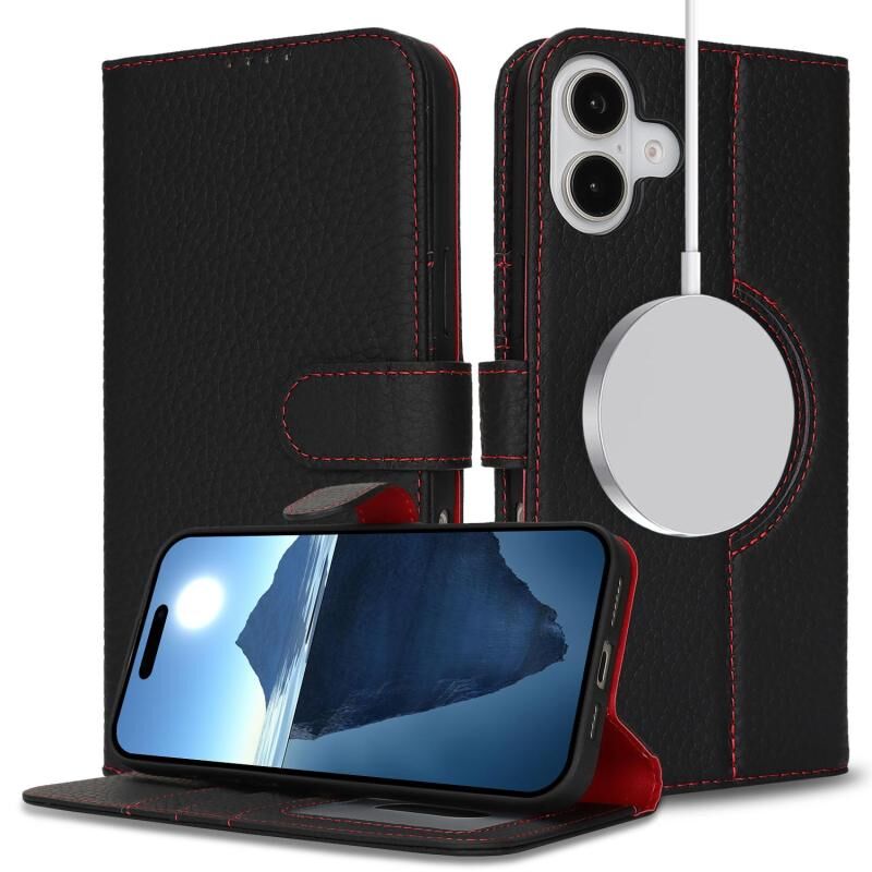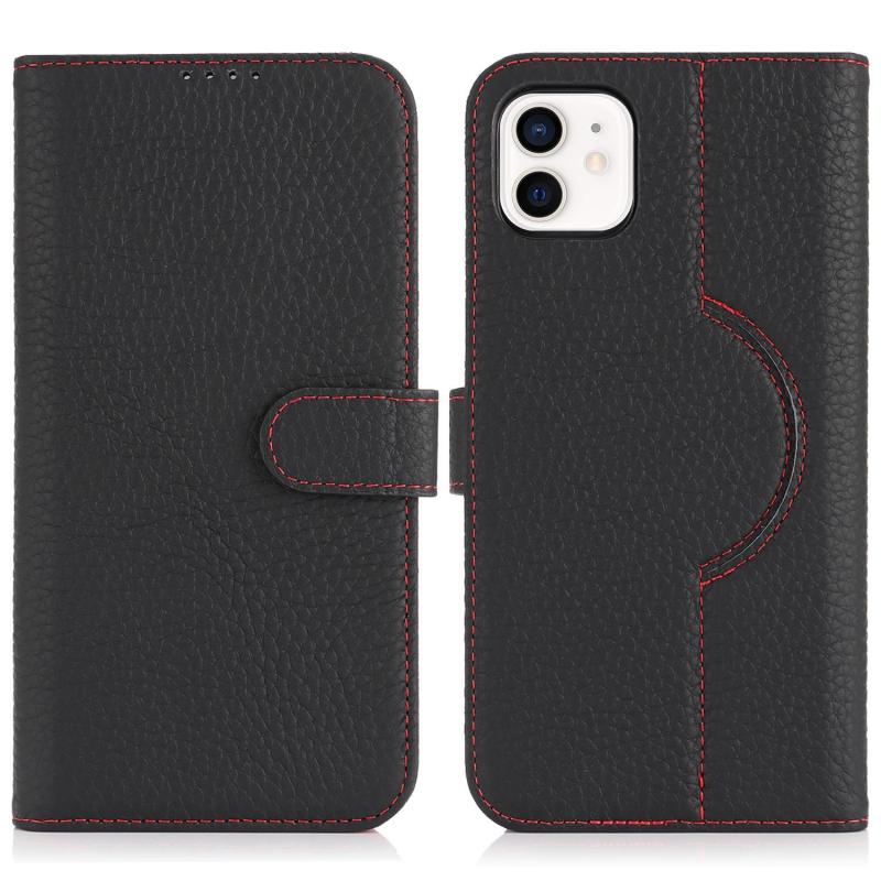 Για iPhone 11 Γνήσια Δερμάτινη Θήκη Κάρτας MagSafe (Litchi Μαύρο)