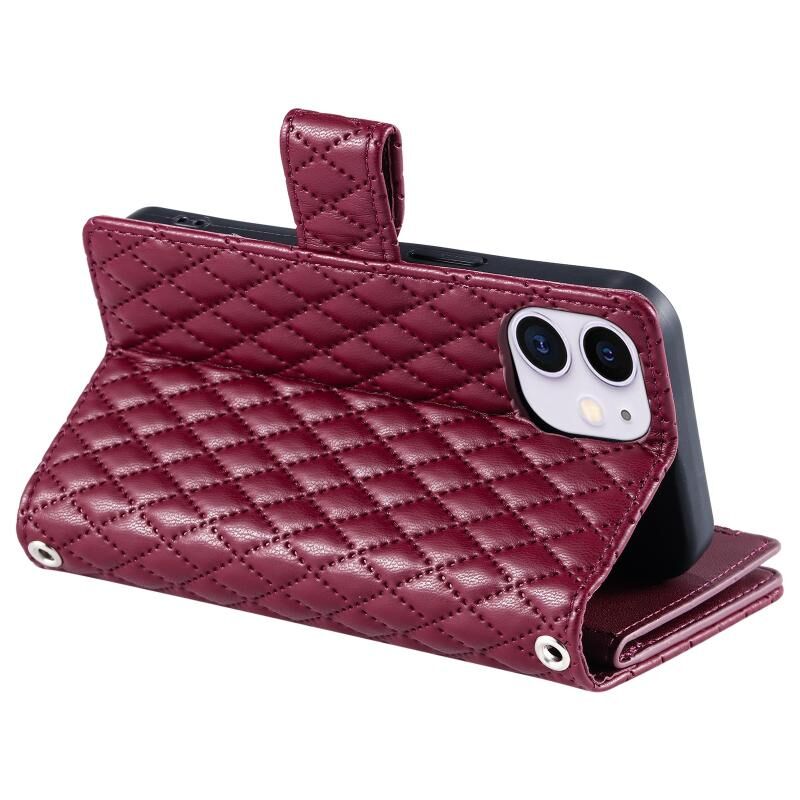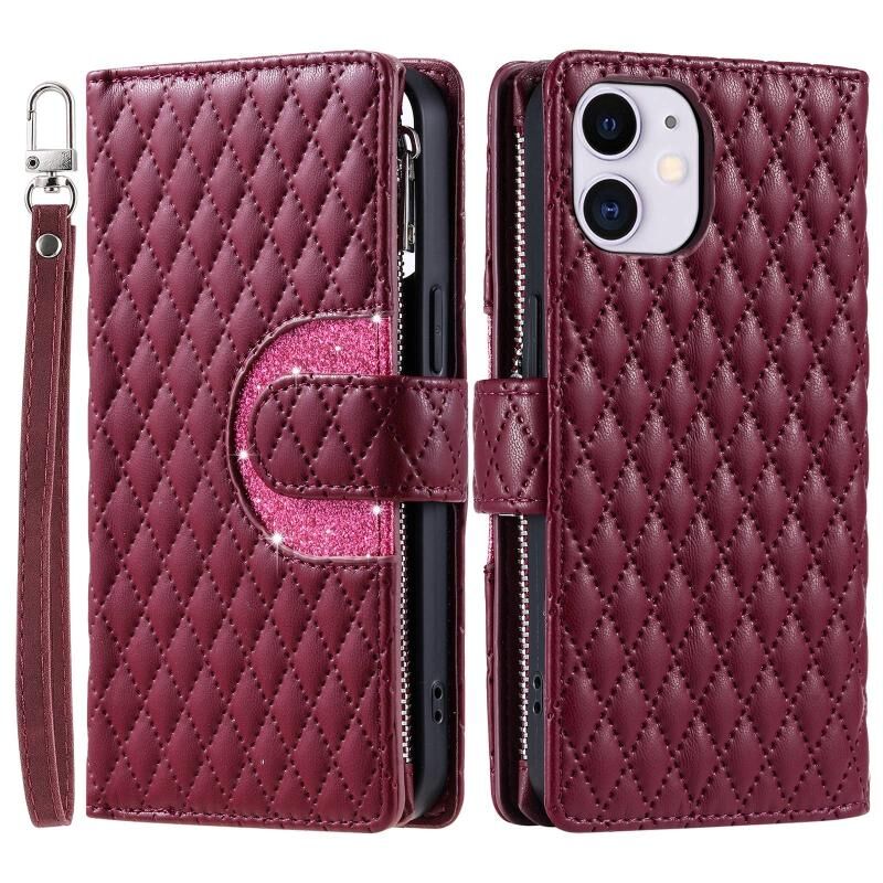 For iPhone 11 Glitter Lattice Zipper Wallet Leather Phone Case(Wine Red)