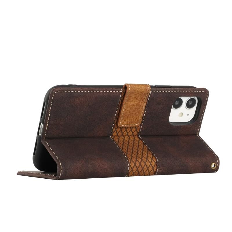 Θήκη τηλεφώνου από δέρμα με ραφή πλέγματος για iPhone 11 με κορδόνι (Μπλε)