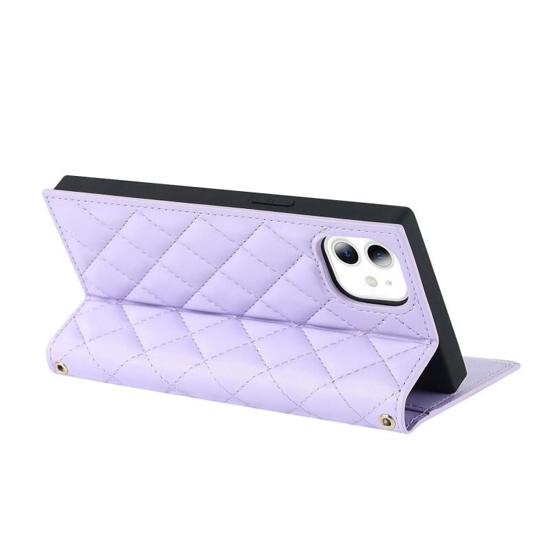 Θήκη τηλεφώνου δερμάτινη με φερμουάρ και λουρί με υφή πλέγματος για iPhone 11 (Χρυσορόδινο)