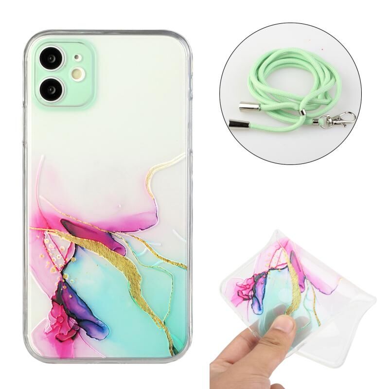 Θήκη για iPhone 11, κοίλης μαρμάρινης υφής, από TPU, αντικραδασμική, προστατευτική με κορδόνι λαιμού (Μπλε)