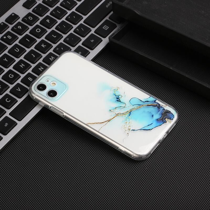 Θήκη προστασίας TPU με κοίλο σχέδιο μαρμάρου για iPhone 11, με ευθείες άκρες και λεπτές οπές (Κίτρινο Μπλε)