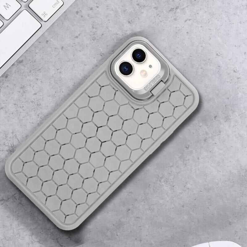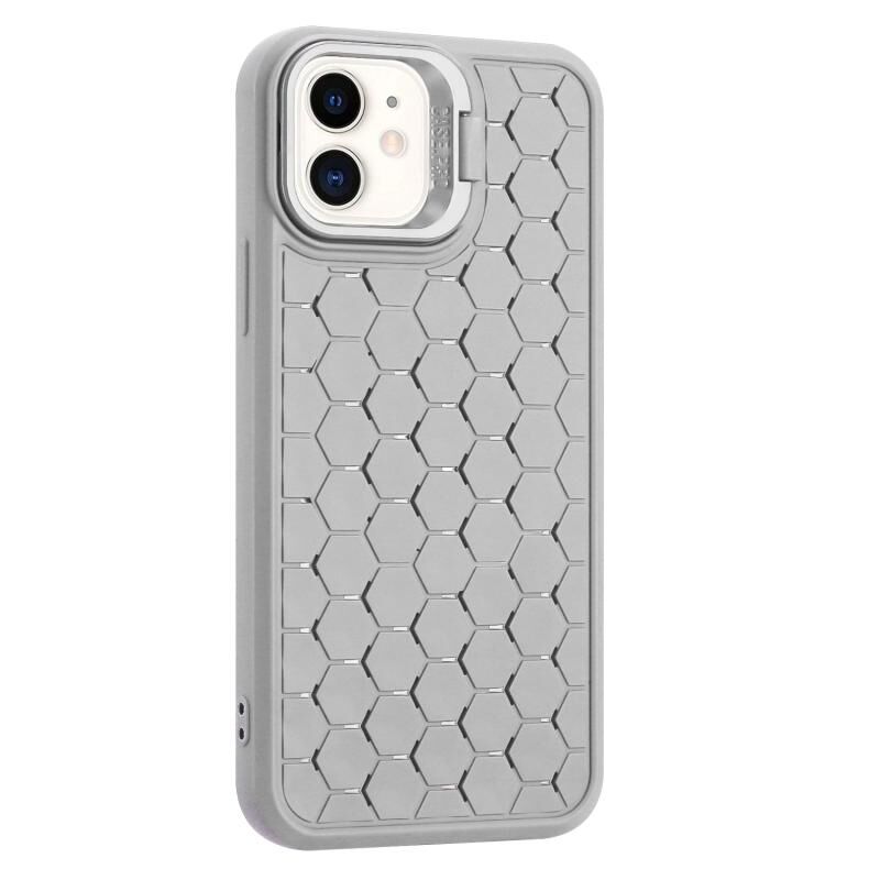 For iPhone 11 Honeycomb Radiating Lens Holder TPU Phone Case(Grey)