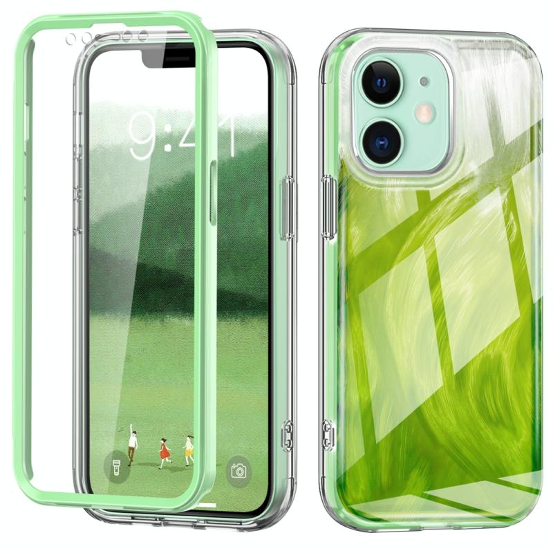 For iPhone 11 IMD Gradient Feather PC Hybrid TPU Phone Case(Green)