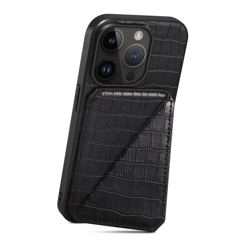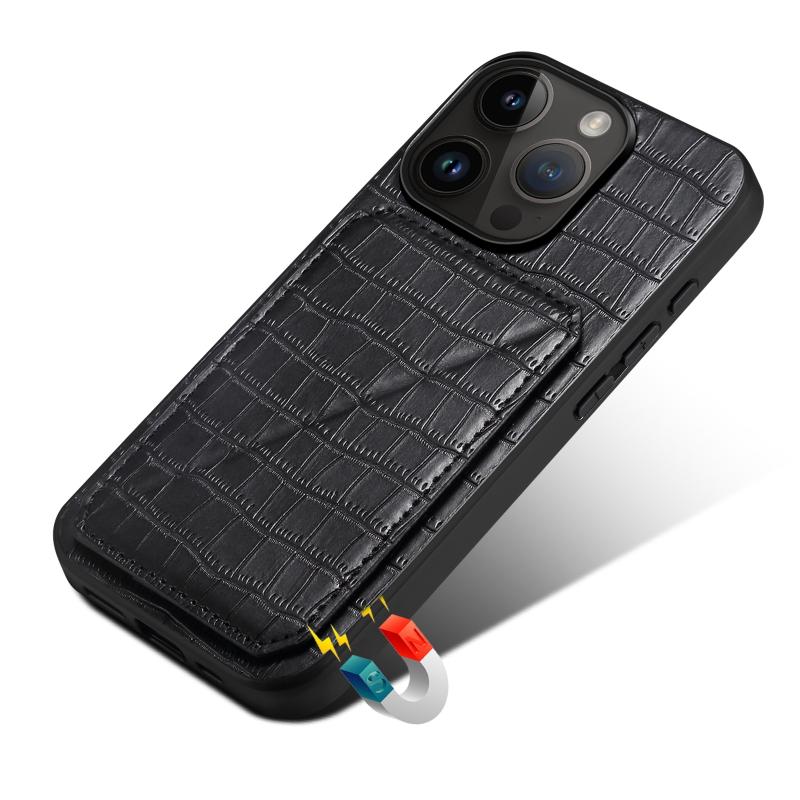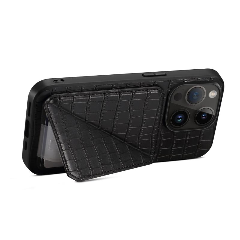 For iPhone 11 Imitation Crocodile Leather Back Phone Case with Holder(Black)