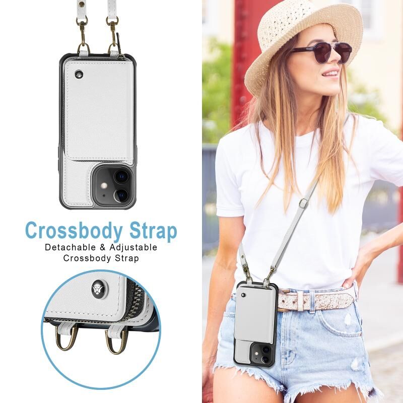 For iPhone 11 JEEHOOD C22 Series Zipper Wallet Leather Phone Case with Dual Lanyard(White) (JEEHOOD)
