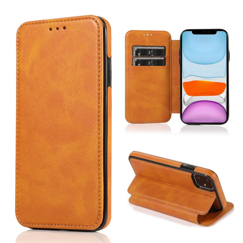 For iPhone 11 Knight Magnetic Suction Leather Phone Case (Khaki)