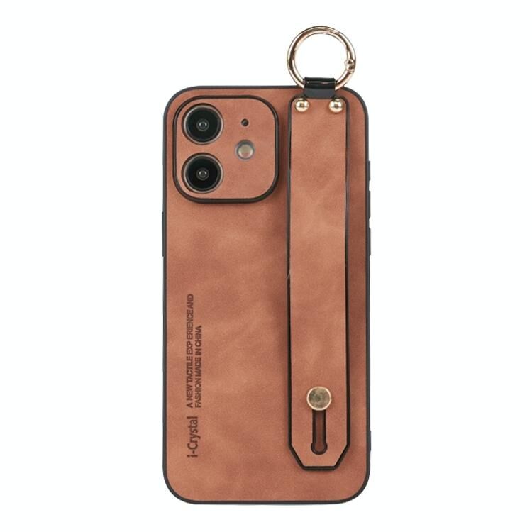 For iPhone 11 Lambskin Wristband Holder Phone Case(Khaki)