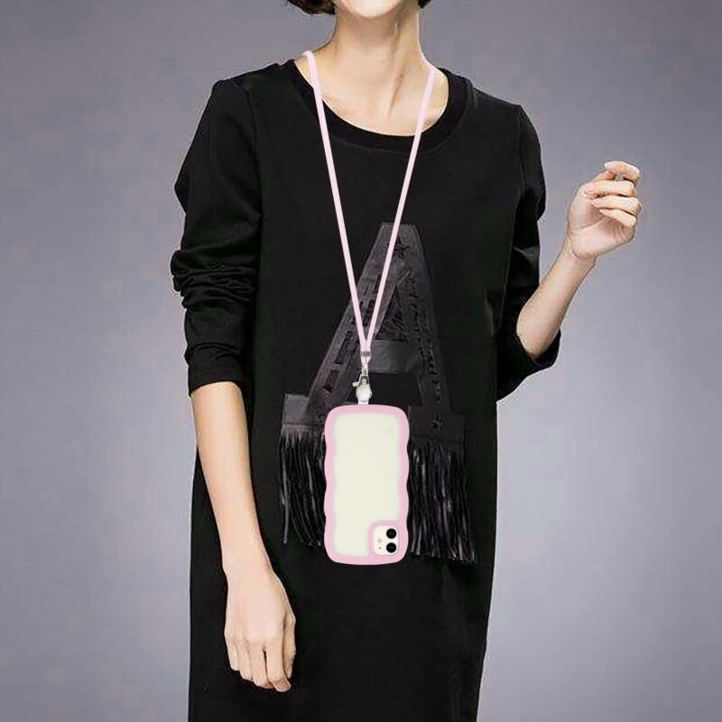 Κορδόνι για iPhone 11, Διαφανής θήκη τηλεφώνου από TPU και PC σε χρώμα καραμέλας με κυματιστό σχέδιο (Λευκό)