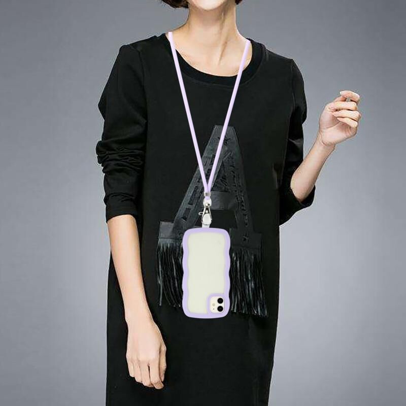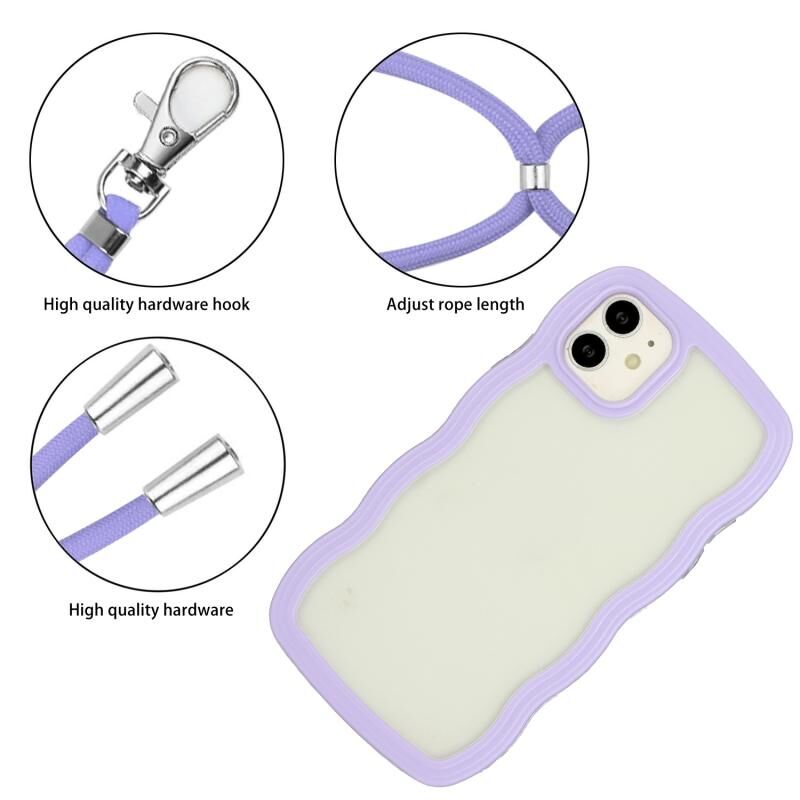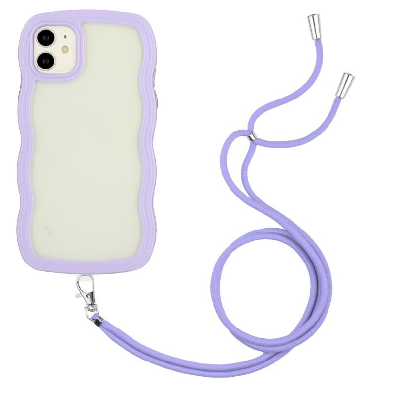 Κορδόνι για iPhone 11, Διαφανής θήκη τηλεφώνου από TPU και PC σε χρώμα καραμέλας με κυματιστό σχέδιο (Λευκό)