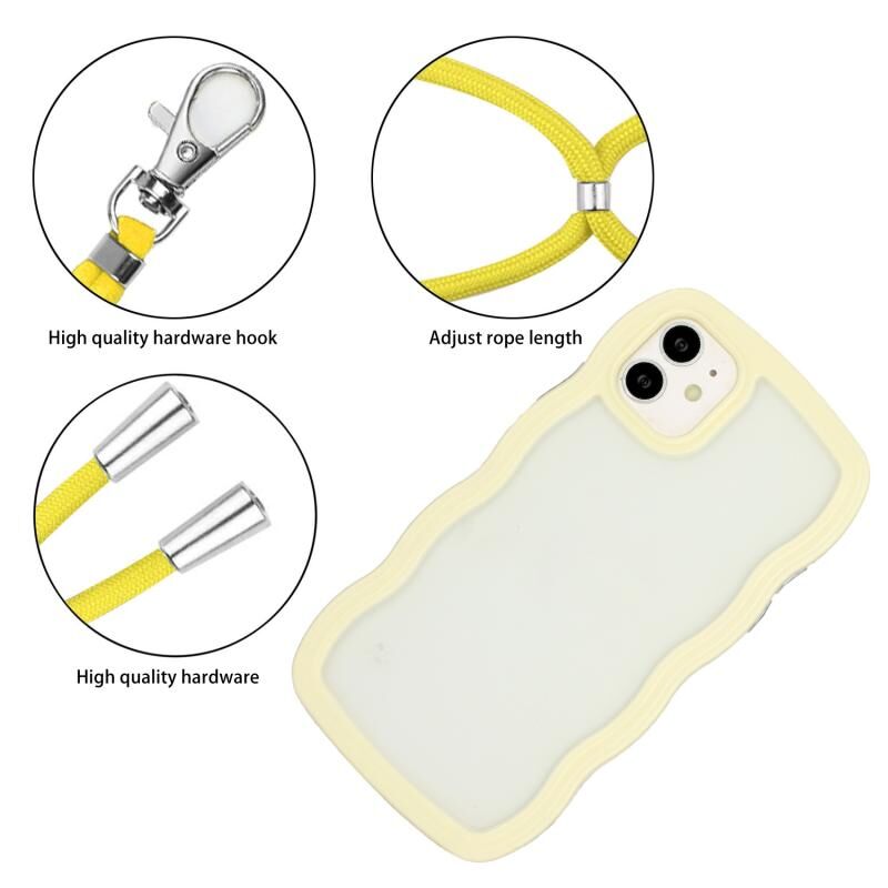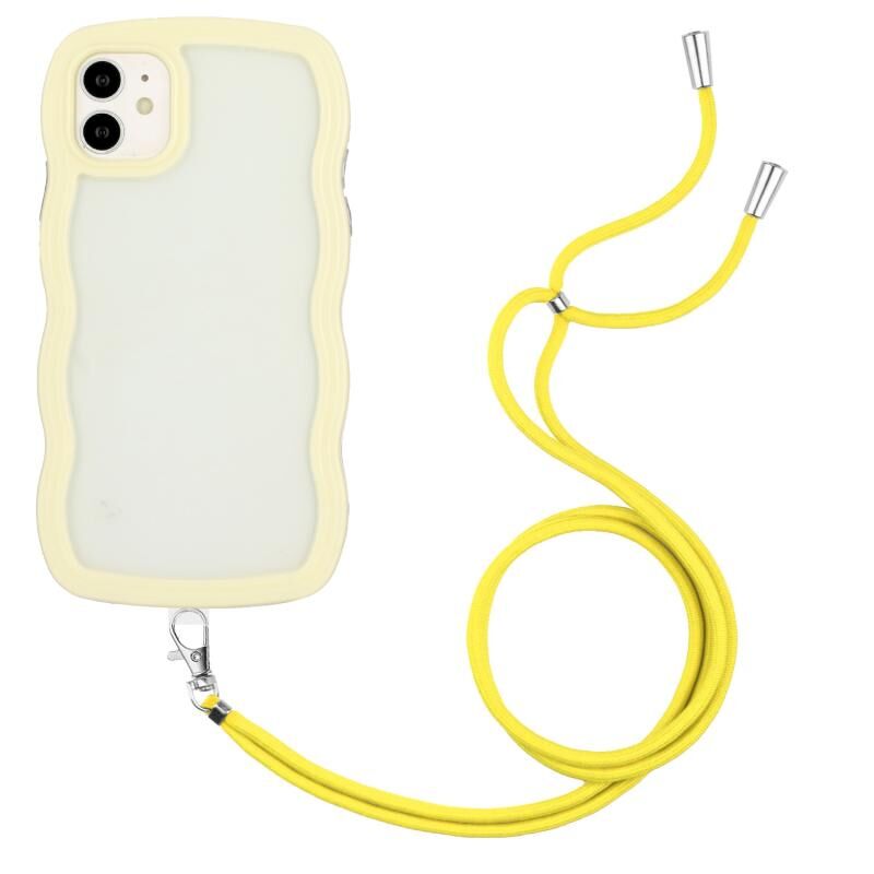 Κορδόνι για iPhone 11, Διαφανής θήκη τηλεφώνου από TPU και PC σε χρώμα καραμέλας με κυματιστό σχέδιο (Λευκό)