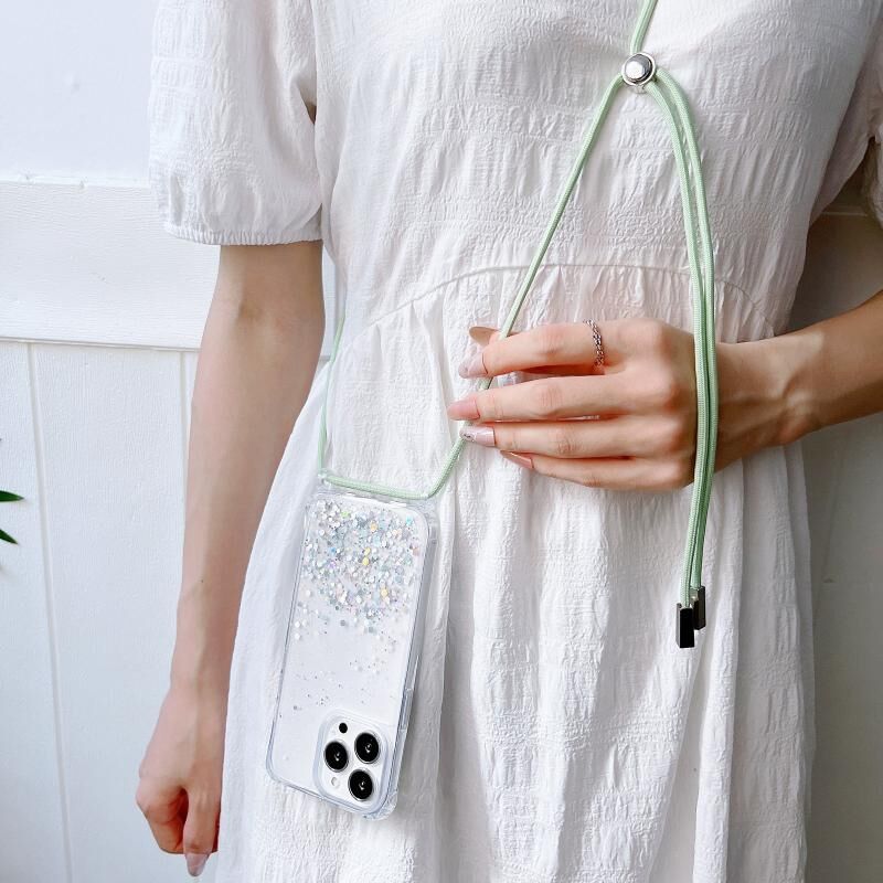 For iPhone 11 Lanyard Glitter Epoxy Clear Phone Case (Dark Green)