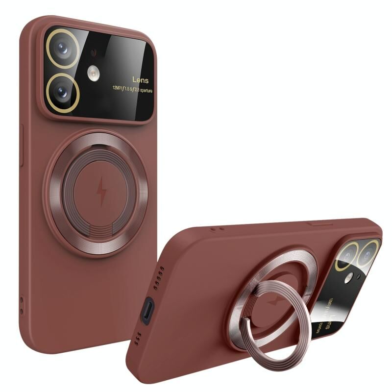 For iPhone 11 Large Window MagSafe Magnetic Holder Phone Case(Claret Red)