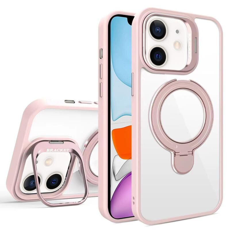 For iPhone 11 Lens Protection & Ring Bracket MagSafe Phone Case(Light Pink)
