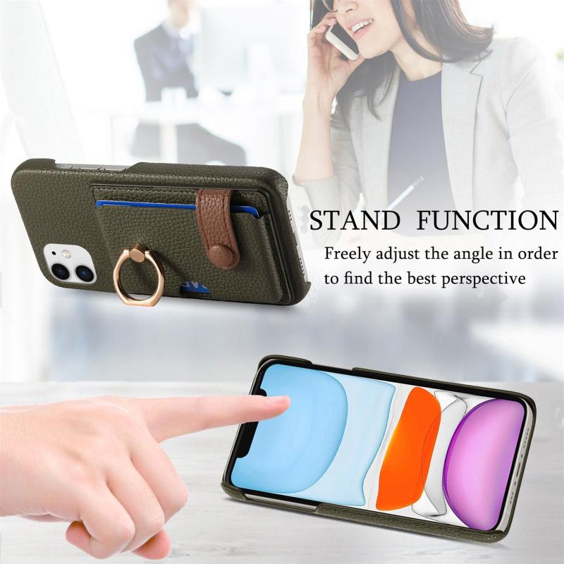 For iPhone 11 Litchi Leather Oil Edge Ring Card Back Phone Case(Green)