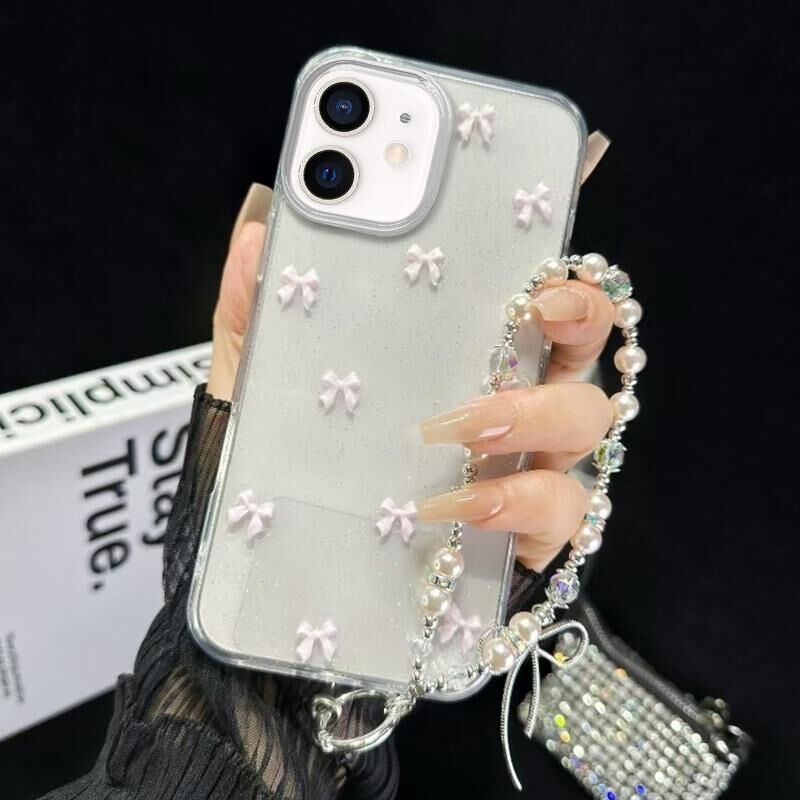 For iPhone 11 Little Fresh Bow Bracelet Chain TPU Phone Case(Pink)