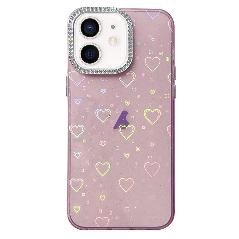 Θήκη τηλεφώνου IMD Acrylic για iPhone 11 με σχέδιο καρδιάς και διαμαντένια στεφάνη φακού (Ροζ)