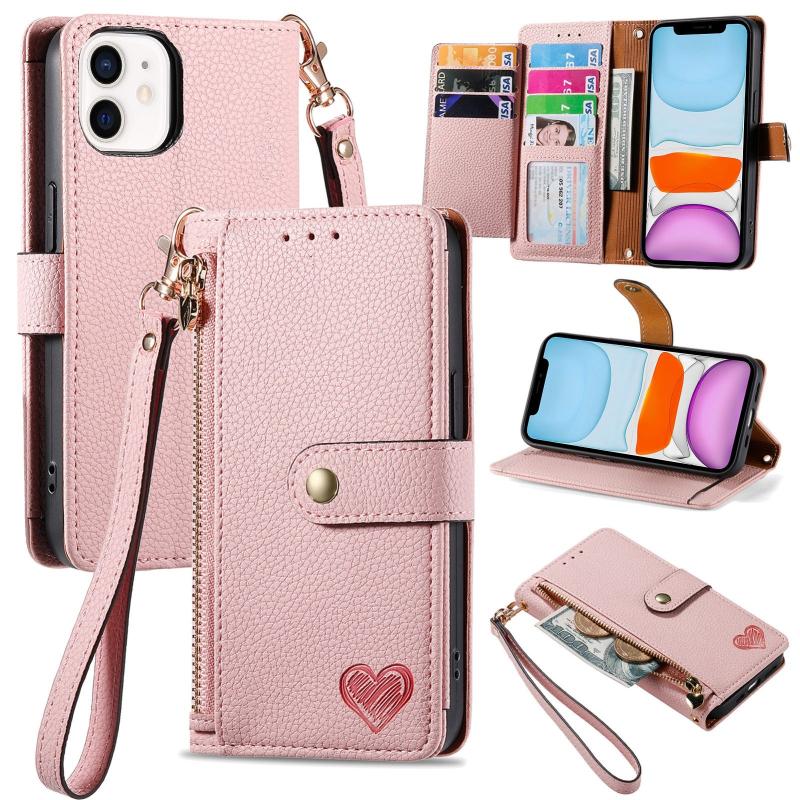 For iPhone 11 Love Zipper Lanyard Leather Phone Case(Pink)
