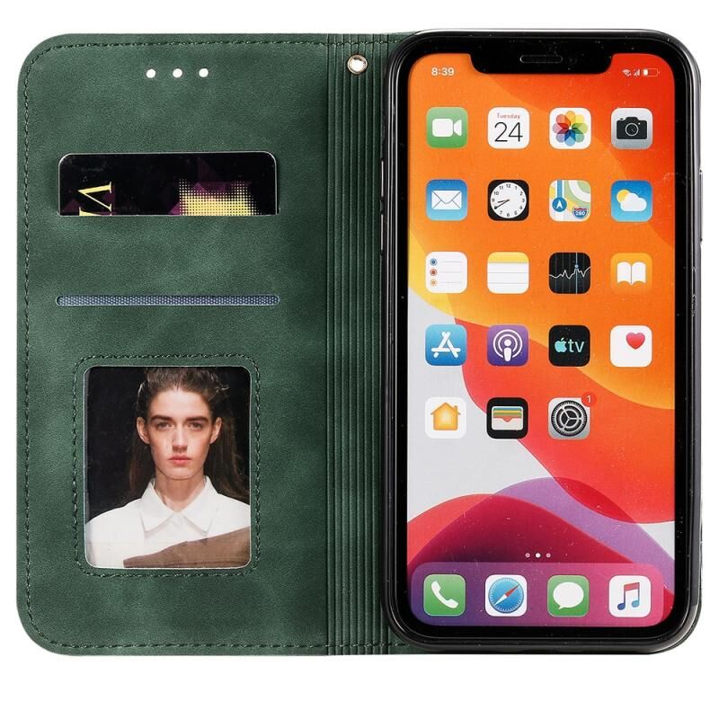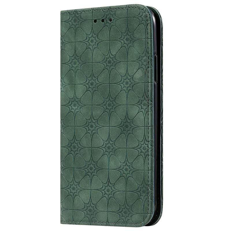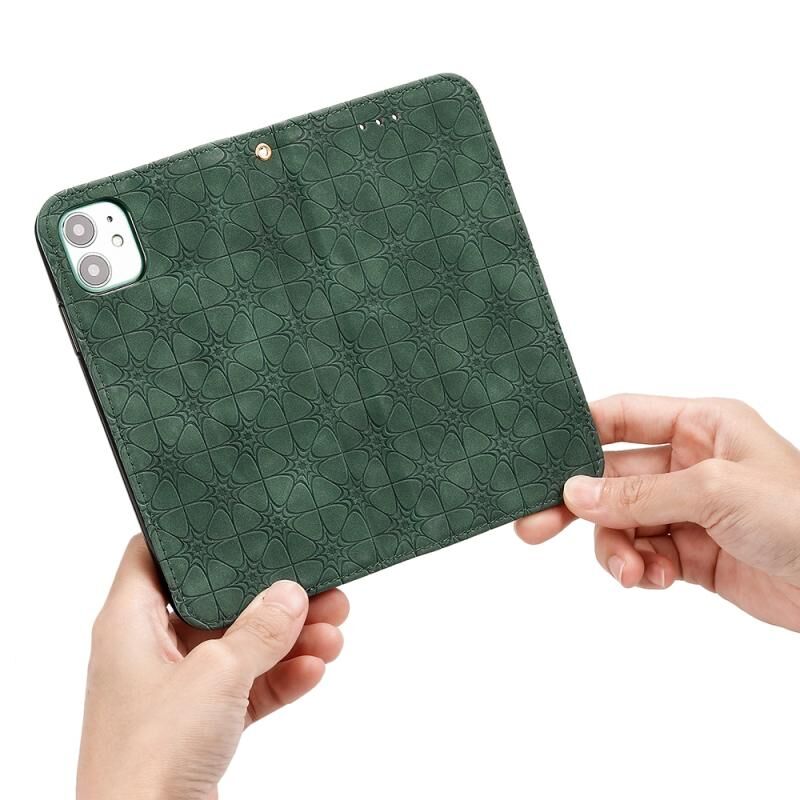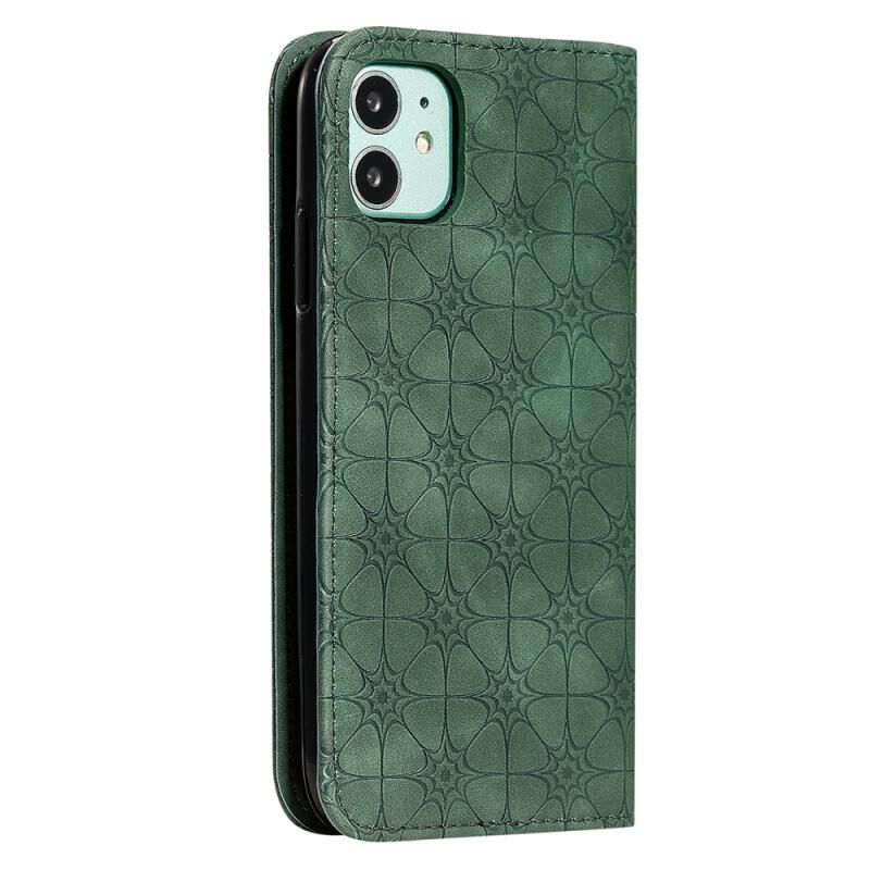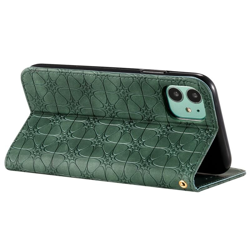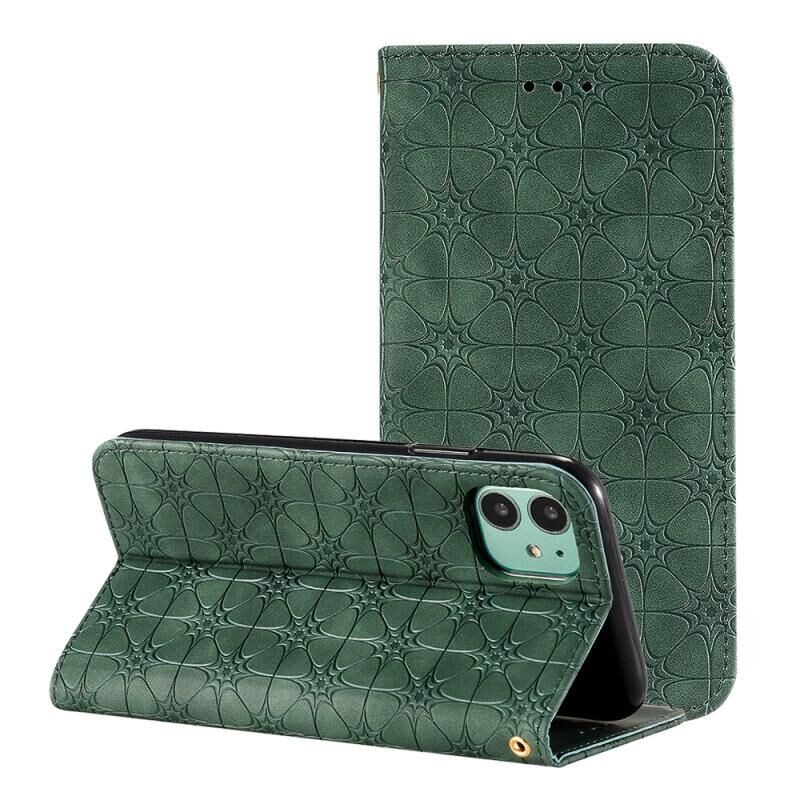 For iPhone 11 Lucky Flowers Embossing Pattern Magnetic Horizontal Flip Leather Case with Holder & Card Slots(Dark Green)