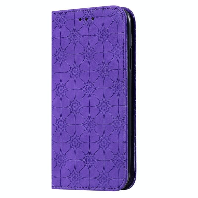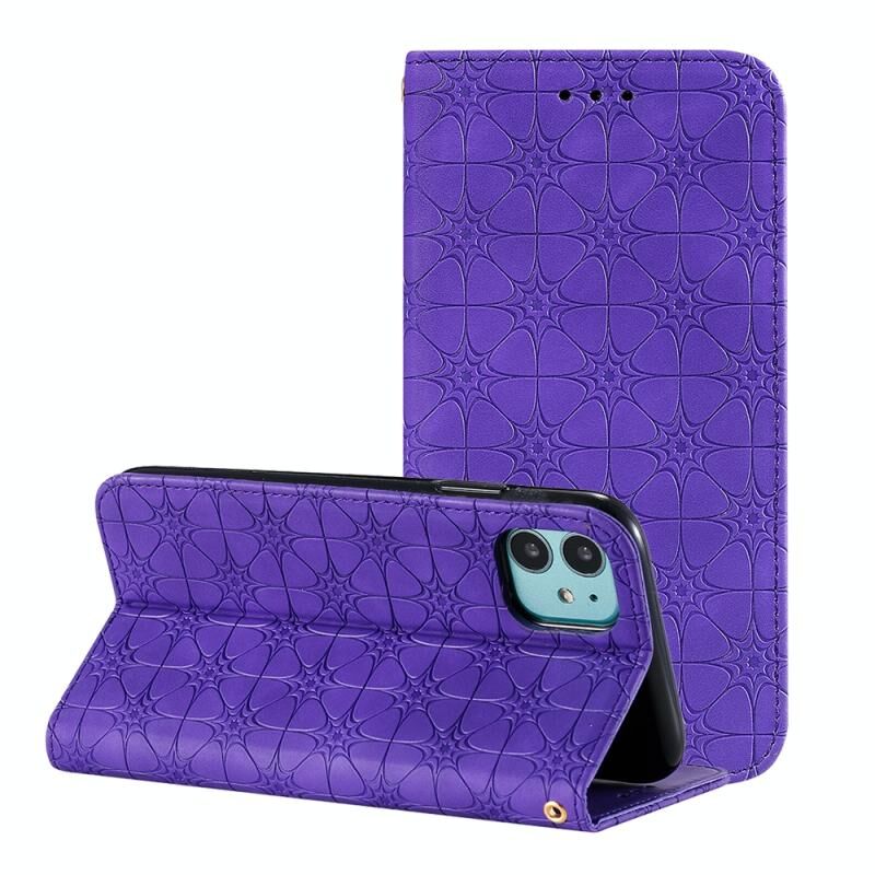 For iPhone 11 Lucky Flowers Embossing Pattern Magnetic Horizontal Flip Leather Case with Holder & Card Slots(Purple)