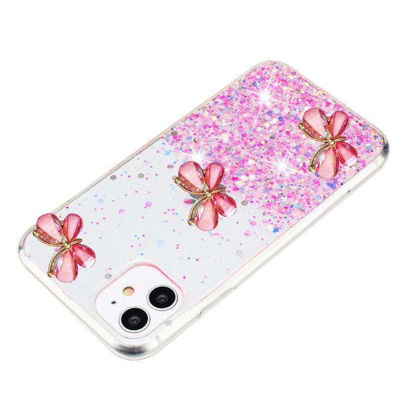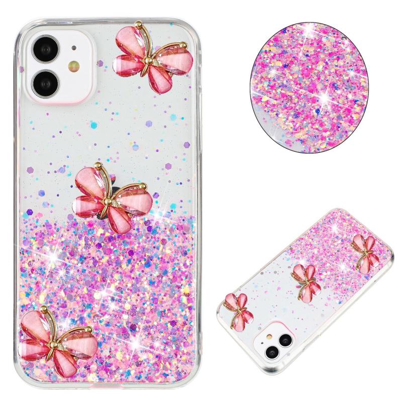 For iPhone 11 Luminous Starry Sky Glitter Butterfly TPU Phone Case(Pink)