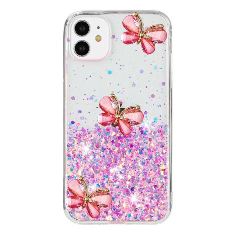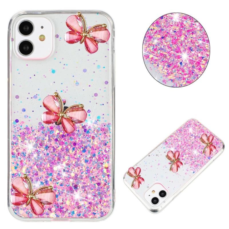 Θήκη τηλεφώνου TPU για iPhone 11, Λαμπερός Αστρικός Ουρανός, Glitter, Πεταλούδα (Ροζ)